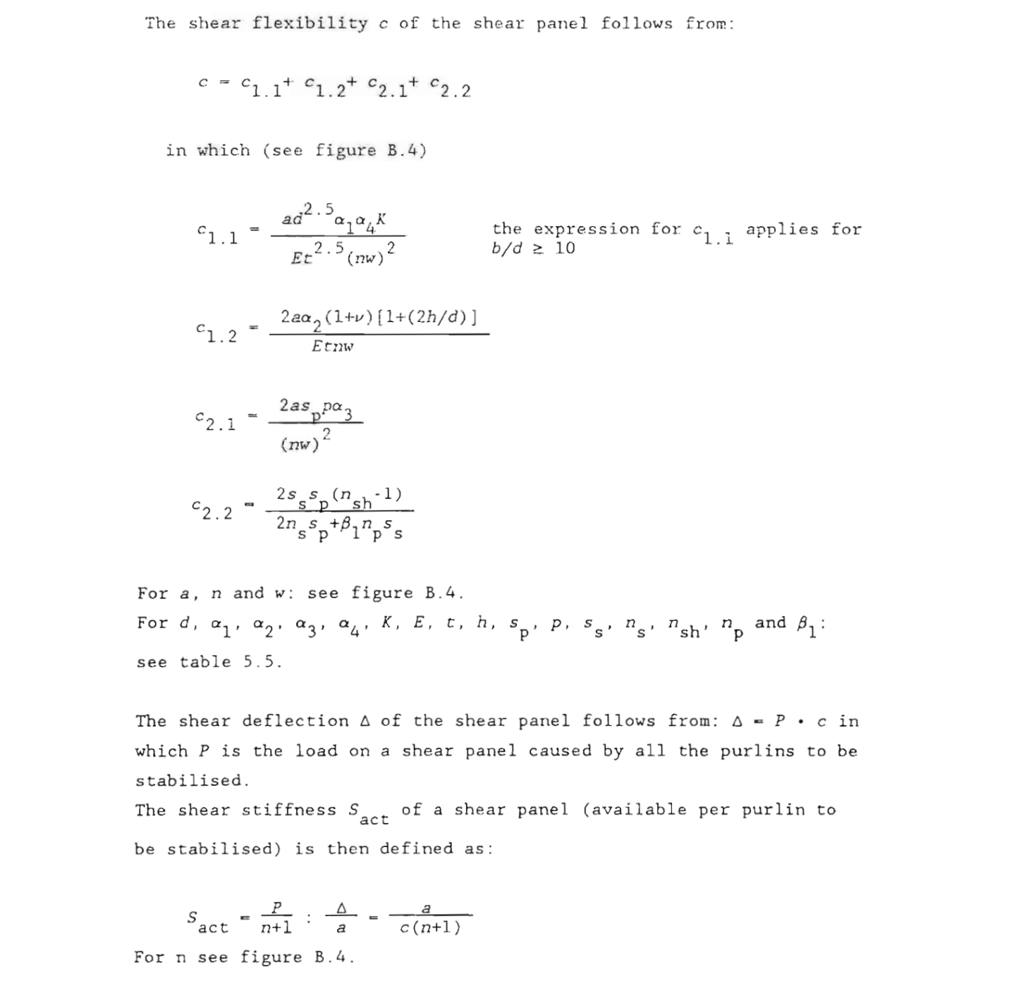 When a metal sheeting has been used as a stabilizing element (to prevent flexural, flexural-torsional and flexural-lateral buckling or a combination of these) the stiffness perpendicular to the section, which has to be stabilized, should be known. From the assumed calculation model the following can be determined: