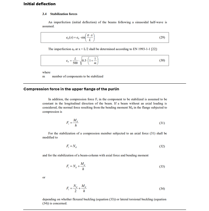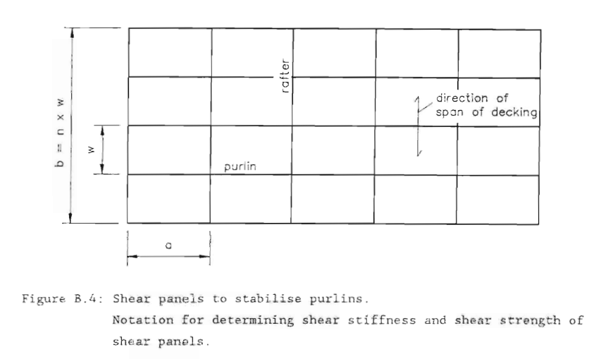 Another approach, recommended in the “European Recommendations for the Application of Metal Sheeting Acting as a Diaphragm – Stressed Skin Design”, considers the roof sheeting itself as a shear diaphragm which provides a stabilizing action (to prevent flexural, flexural-torsional and flexural-lateral buckling or a combination of these).
