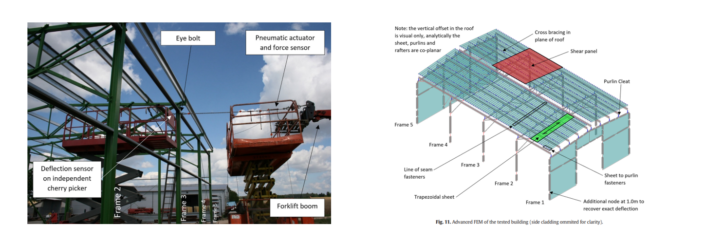 Reference: Gryniewicz, M., Roberts, M.J. and Davies, J.M., 2021. Testing and analysis of a full-scale steel-framed building including the consideration of structure-cladding interaction. Journal of Constructional Steel Research, 181, p.106611. https://doi.org/10.1016/j.jcsr.2021.106611