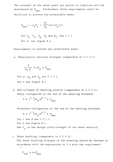 b) Shear strength of the metal sheeting to stabilize purlins